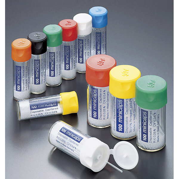 藤野贸易优势供应全系日本ASONE产品,正规亚速旺授权销售。.2-453-07 微量毛细管(minicaps) 10µl (100支/个) EMミニキャップス10マイクロ 100入 10 微量毛细管 weiliangmaoxiguan CAPILLARY EMマイスターミニキャップスR 其他横切面的误差仅为0.01mm的玻璃毛细管●通过毛细管现象进行吸液,即使实验人员改变也不会产生误